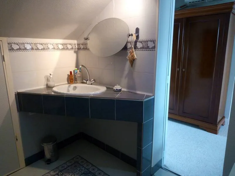 A recent house in a very quiet village. Upstairs, 1 air-conditioned bedroom (1 double bed + 1 extra bed), private shower room and toilet. On the ground floor, 1 bedroom (2 single beds), private shower room and toilet, 1 separate bedroom (1double bed), private shower room and toilet. Large enclosed garden with trees and garden furniture. Open all year round.Localisation