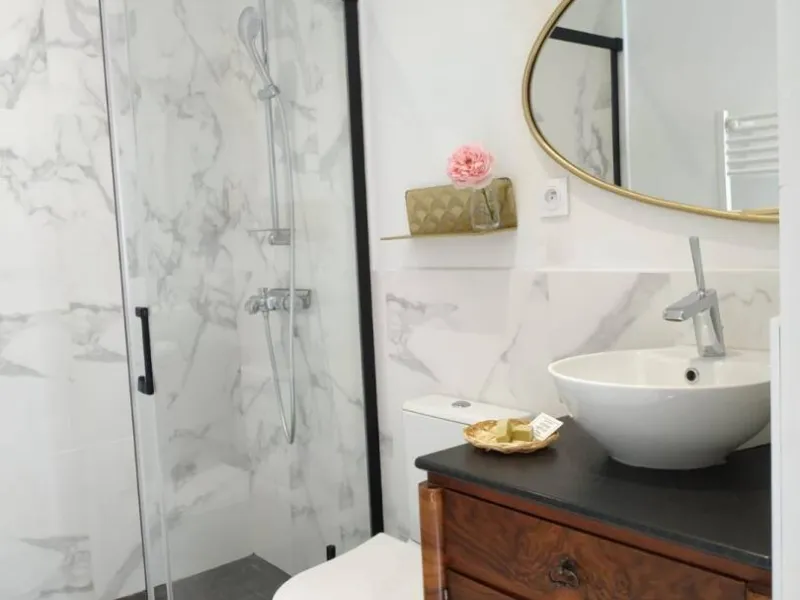 Le Studio de la Longère: accommodation for two people, with two twin beds, a shower room, a kitchenette