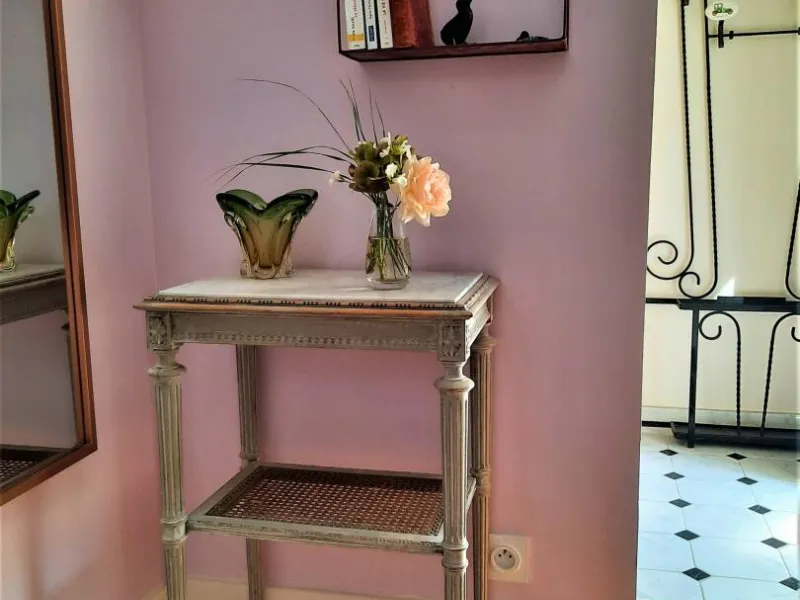 The property consists of a farmhouse and a villa, on either side of a wide driveway. It is embellished with a garden of 2500 m2 at the rear of the villa.