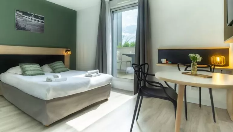 Right in the centre of Tours, the City Résidence Tours flat hotel welcomes you to its flats, which can accommodate up to 4 people. To make the most of your stay, the apartments are fully equipped and furnished. Benefit from à la carte hotel services (breakfast, private parking, laundry, etc.) to make your stay even more enjoyable.