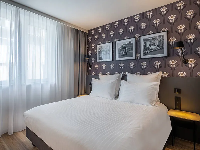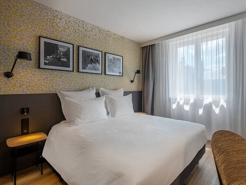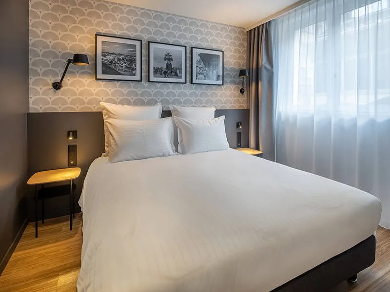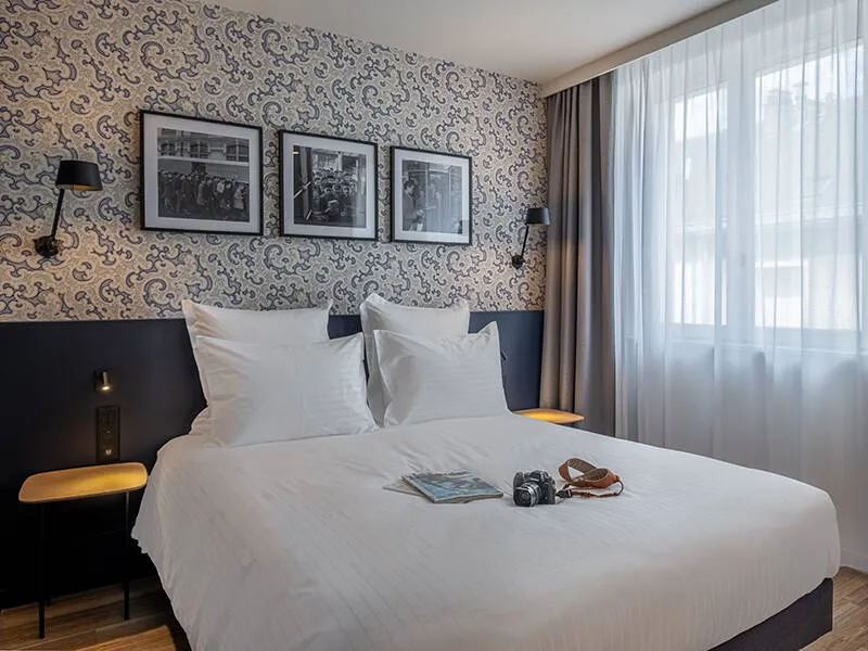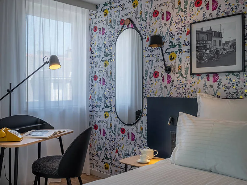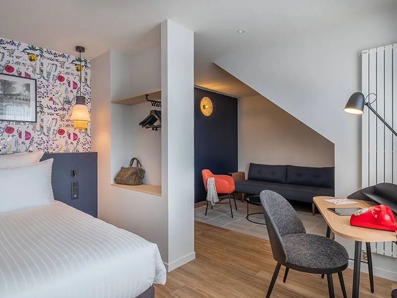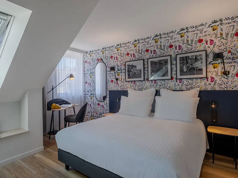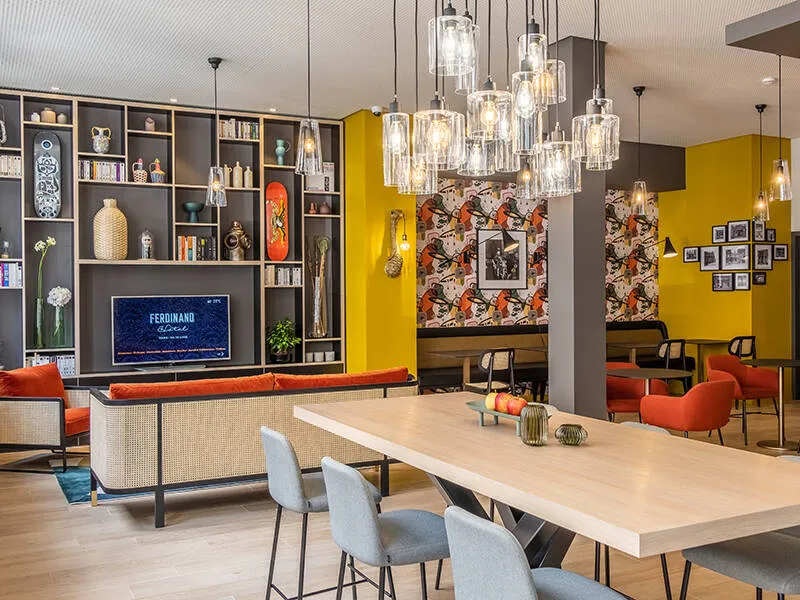 Completely renovated in 2021, the Ferdinand Hôtel combines designer furniture, designer lighting and deep, contemporary colours in a warm, upmarket style.in a warm, upmarket style.
