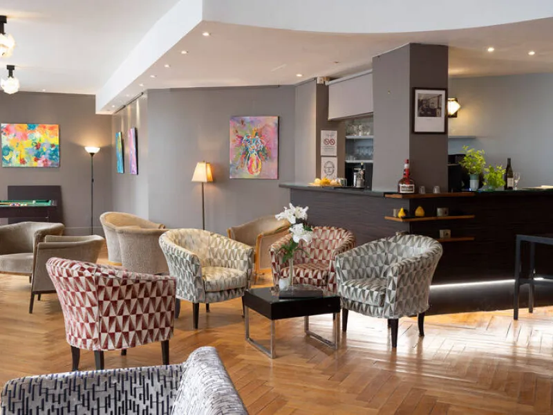 Opposite the train station and the convention centre, this charming business hotel would be happy to welcome you. There are 105 bedrooms for 1 - 5 people, all with a bathroom, satellite TV and free Wi-Fi. Various services are offered.Localisation