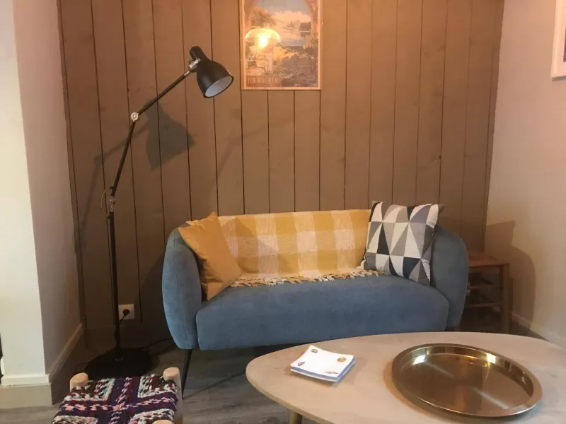 NO COMPANY or BUSINESS TRAVEL The gîte "La Maison d'à vite" is a charming house in the city center, tastefully renovated. Shops and forest nearby.Small courtyard with garden furniture and barbecue. Free parking in the streets around the cottage. On the ground floor: entrance to fully fitted kitchen, living room with TV. 1 shower room/WC.