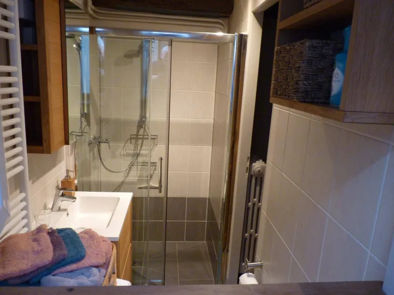 Upstairs: 2 bedrooms each with a double bed (140). 1 separate toilet with hand basin. Included in the price: Heating. Sheets. Household linens. Baby cot. WIRELESS. In addition: Tourist tax Optional service: cleaning package (€50). Gîte not accessible to people with reduced mobility.