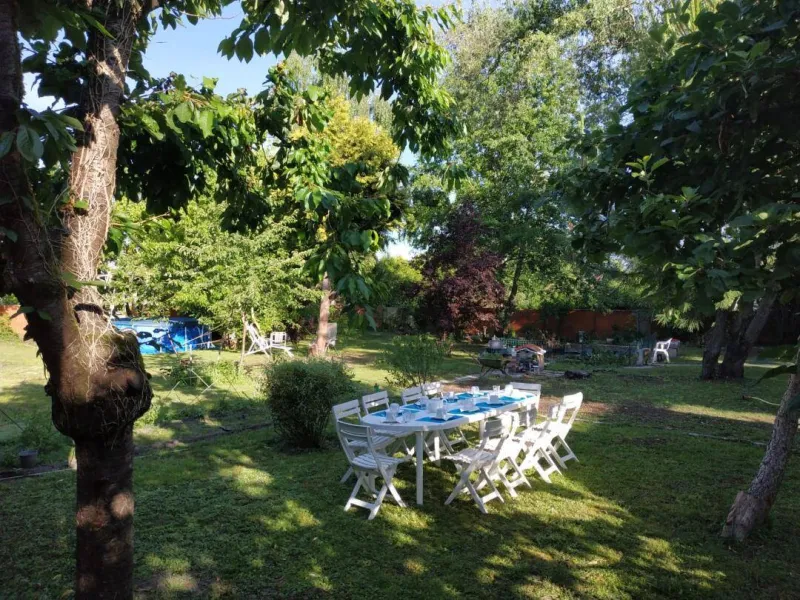 The property consists of a farmhouse and a villa, on either side of a wide driveway. It is embellished with a garden of 2500 m2 at the rear of the villa.