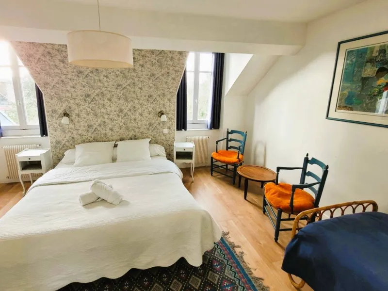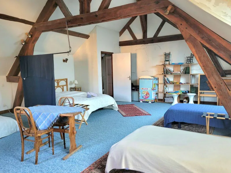 Le Duplex de la Longère: family accommodation with two couples' rooms and a junior dormitory, a bathroom, two washrooms, a living room with kitchen area, a terrace.