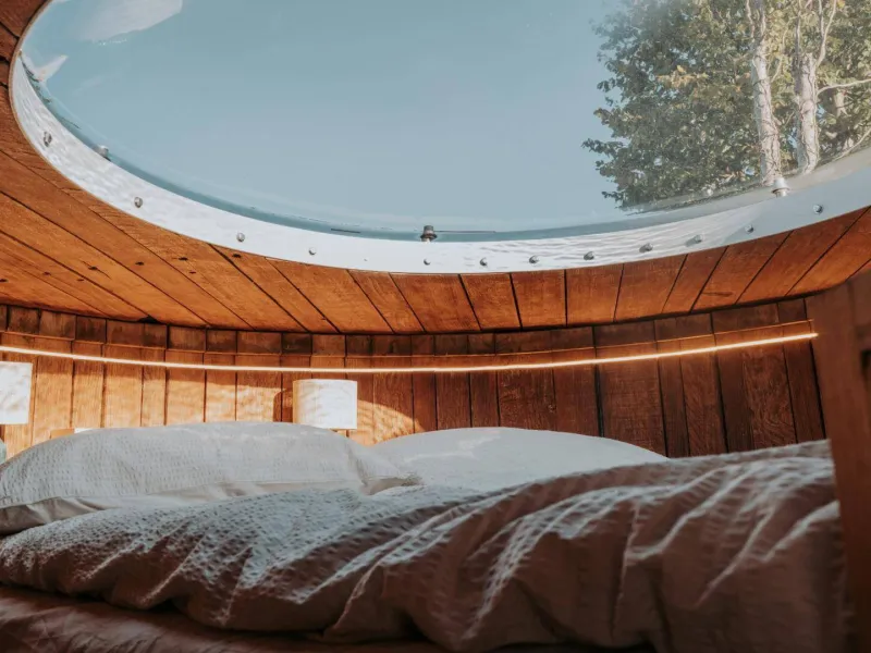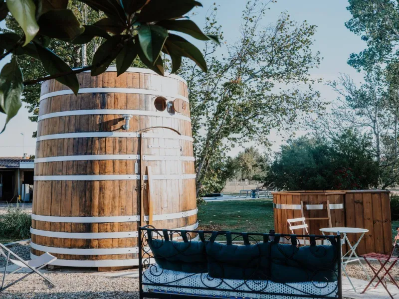 Formerly the wine vat of the prestigious Château Talbot, this century-old foudre has been completely transformed into an unusual, eco-responsible accommodation, to welcome lovers of calm, authenticity... and out-of-the-ordinary experiences.