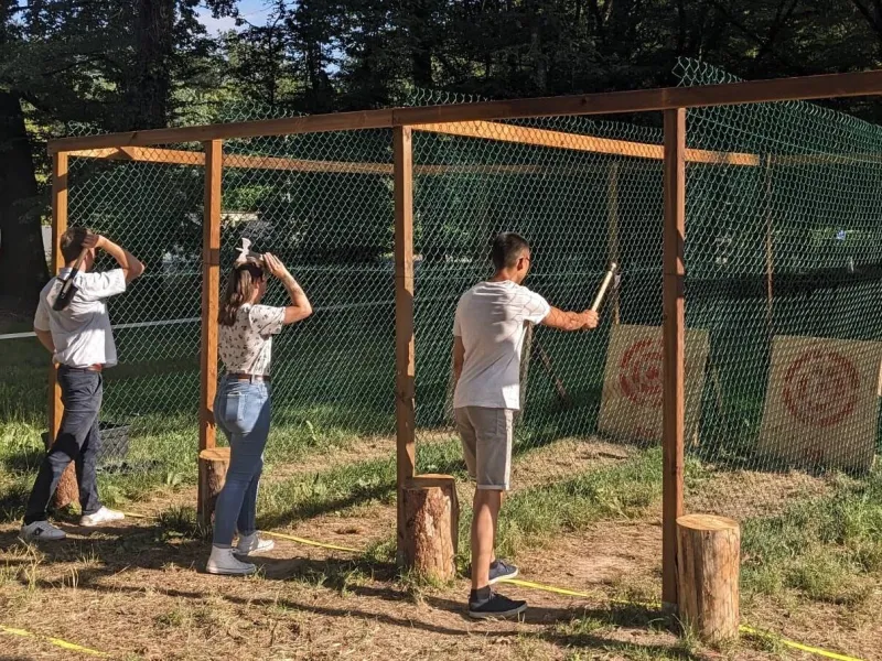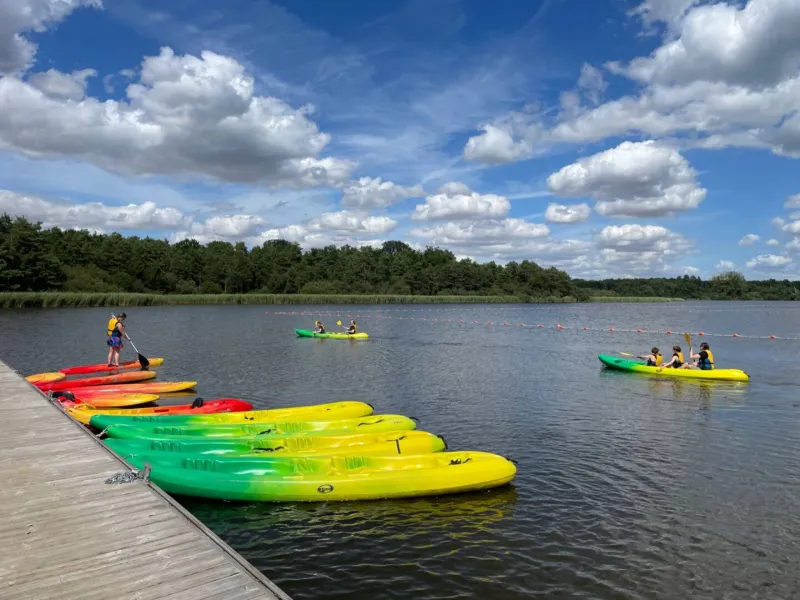 L'étang de la Vallée de Combreux is a little corner of paradise in the heart of the Orléans forest. It's a peaceful place to enjoy with the whole family. You'll find the Vallée Snack Club in the leisure center building, where we offer a full range of snacks. We also offer a range of leisure activities: axe throwing, outdoor Escape game, Gel Blaster, canoe and kayak rental and Stand Up Paddle! New for 2024: 2 pedal boats, accrobranche with 3 courses for children aged 3 to 12, electric mountain bike rentals. There's also a supervised beach and the chance to swim in the pond in summer.Localisation